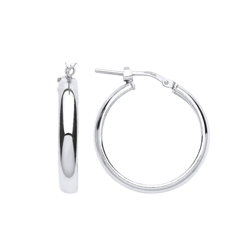 925 Sterling Silver 3mm Thick 23mm Hoop Earrings With Flat Interior