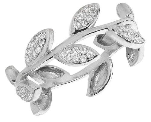 925 Sterling Silver Ladies Plain Band With Cubic Zirconia Leaves Design Ring