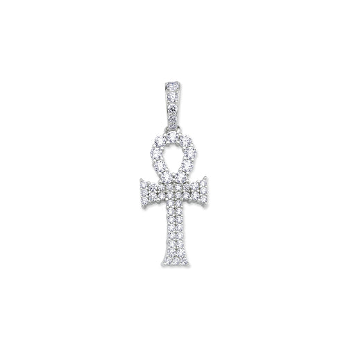 925 Sterling Silver Cubic Zirconia Pave Set Ankh Cross Pendant