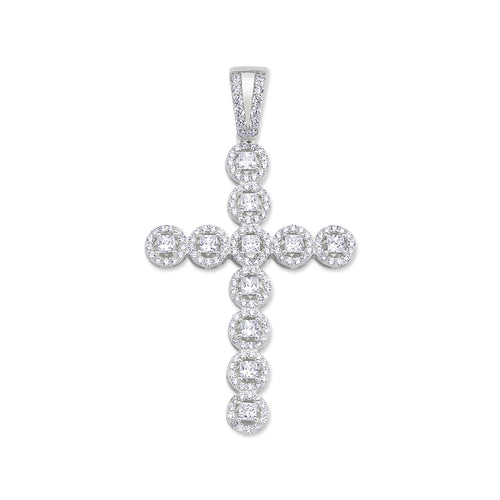 925 Sterling Silver Cubic Zirconia Halo Style Fancy Cross Pendant