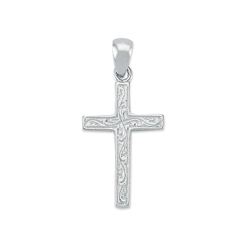 925 Sterling Silver Hallmarked Engraved Pattern Cross Pendant