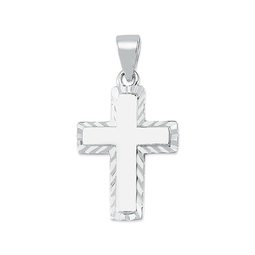 925 Sterling Silver Plain Diamond Cut Cross Pendant