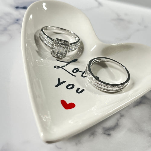 • 925 Sterling Silver Ladies Baguette Cubic Zirconia 2 Ring Set