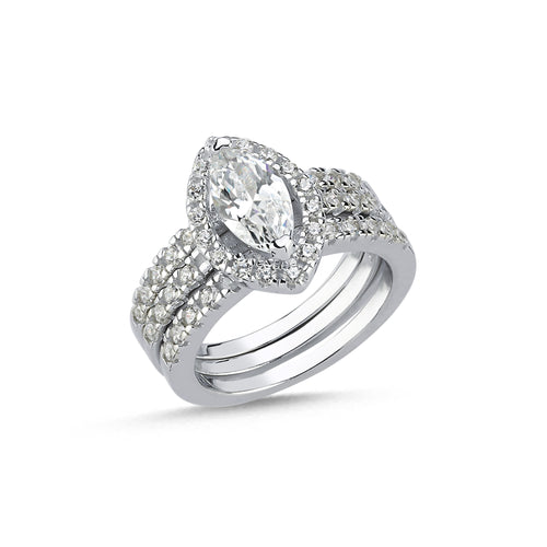 • 925 Sterling Silver Ladies Marquise Cubic Zirconia 3 Ring Set