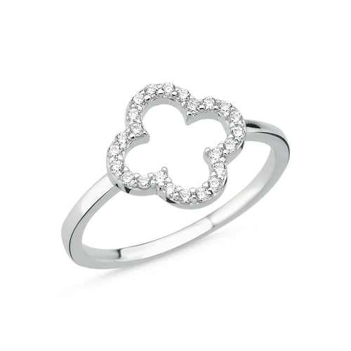 • 925 Sterling Silver Cubic Zirconia Open 4 Leaf Clover Design Ring