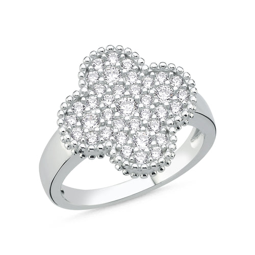• 925 Sterling Silver Cubic Zirconia Encrusted 4 Leaf Clover Design Ring