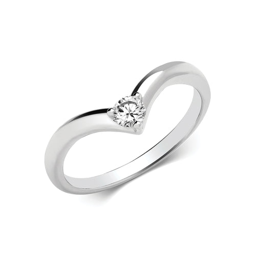 • 925 Sterling Silver Ladies Single Cubic Zirconia Wishbone Ring
