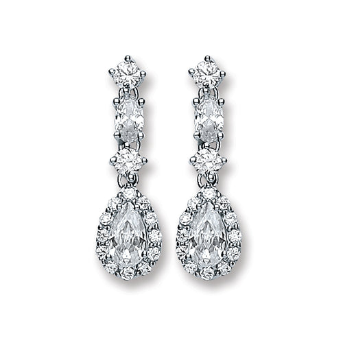 925 Sterling Silver Cubic Zirconia Graduating Teardrop/Pear Drop Earrings