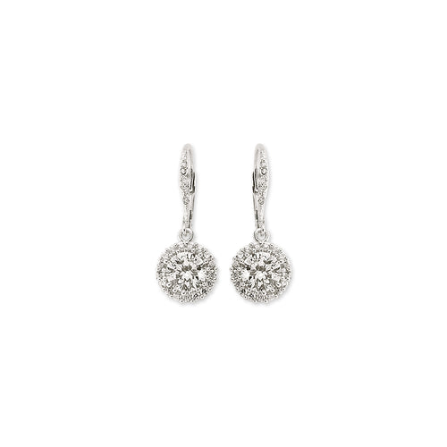 925 Sterling Silver Cubic Zirconia Round Cluster Drop Earrings