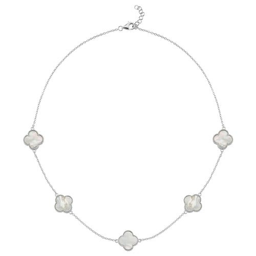 925 Sterling Silver Single Mother Of Pearl and Cubic Zirconia 4 Leaf Clover Necklace