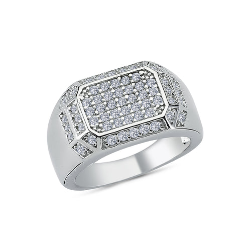 925 Sterling Silver Gents Pave Set Cubic Zirconia Rounded Edge Rectangle Design Ring