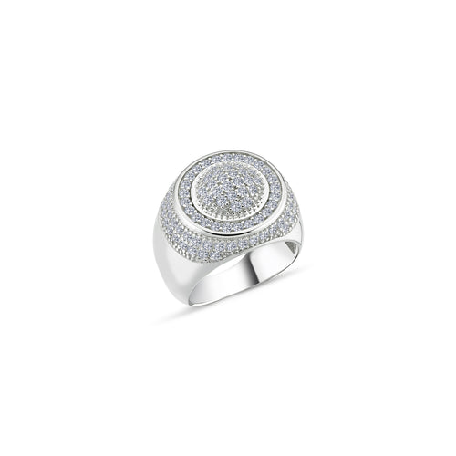 925 Sterling Silver Gents Pave Set Cubic Zirconia Round Design Ring