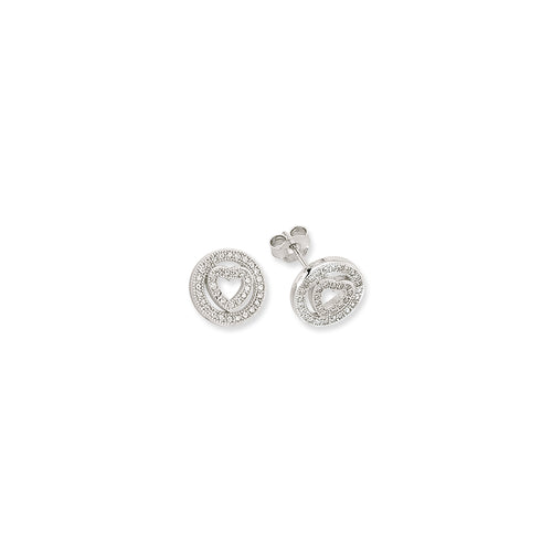 925 Sterling Silver Cubic Zirconia Open Circle With Open Heart Stud Earrings