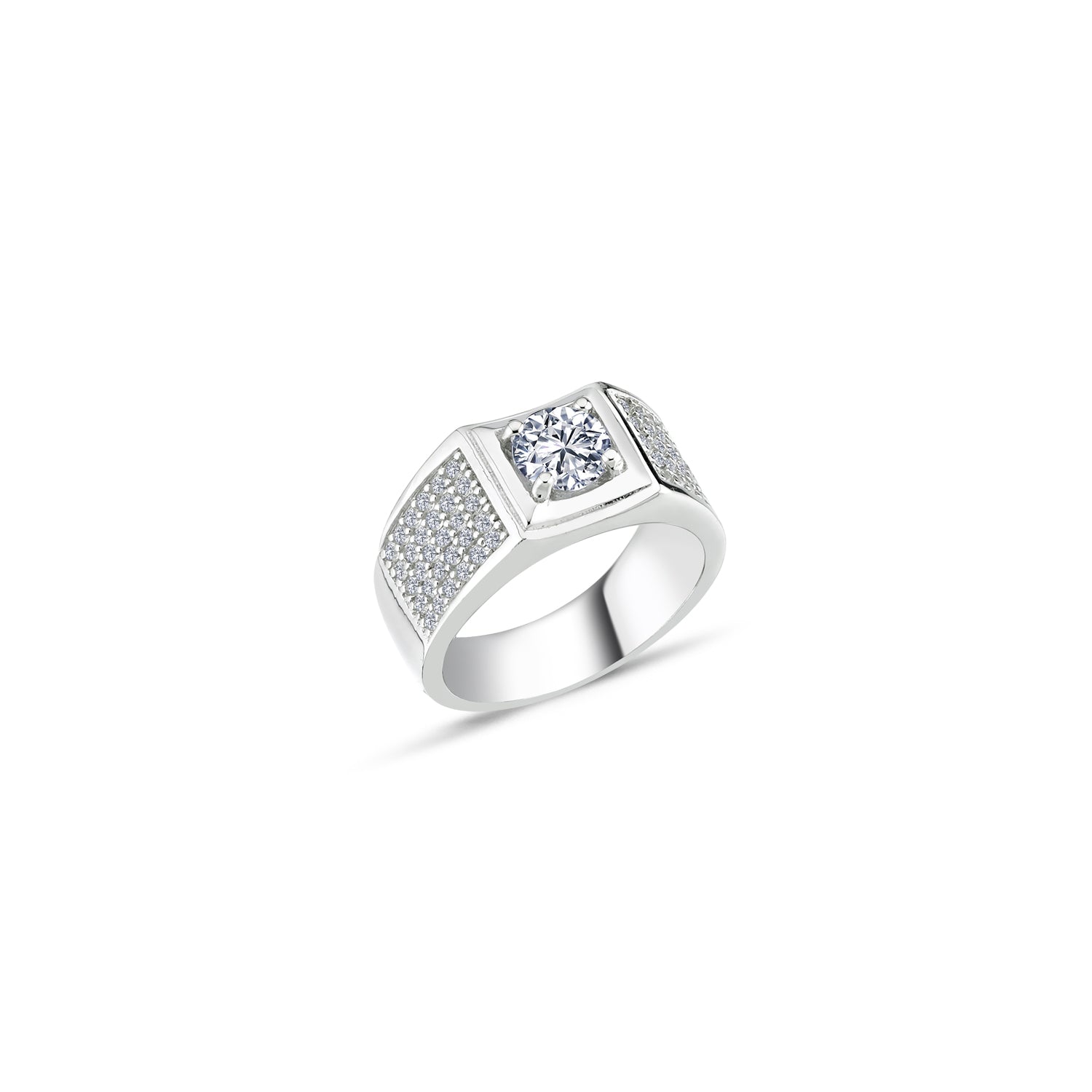 Gents Pave Set Single Stone Cubic Zirconia Ring