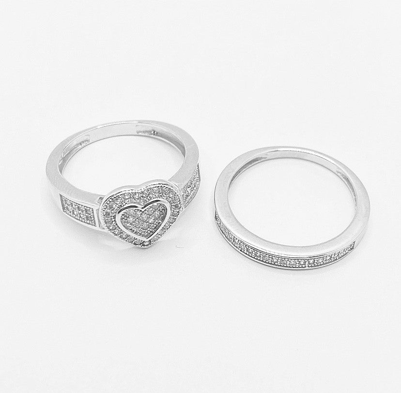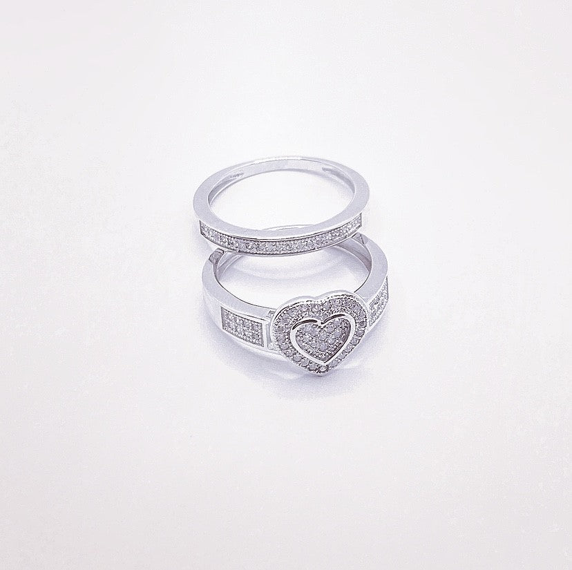 Ladies Heart Cubic Zirconia Ring With 2 Row Cubic Zirconia Shoulders 2 Ring Set
