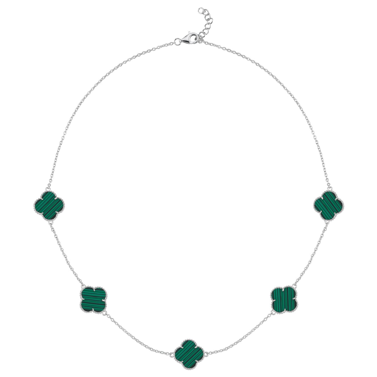 5 Malachite and Cubic Zirconia 4 Leaf Clovers