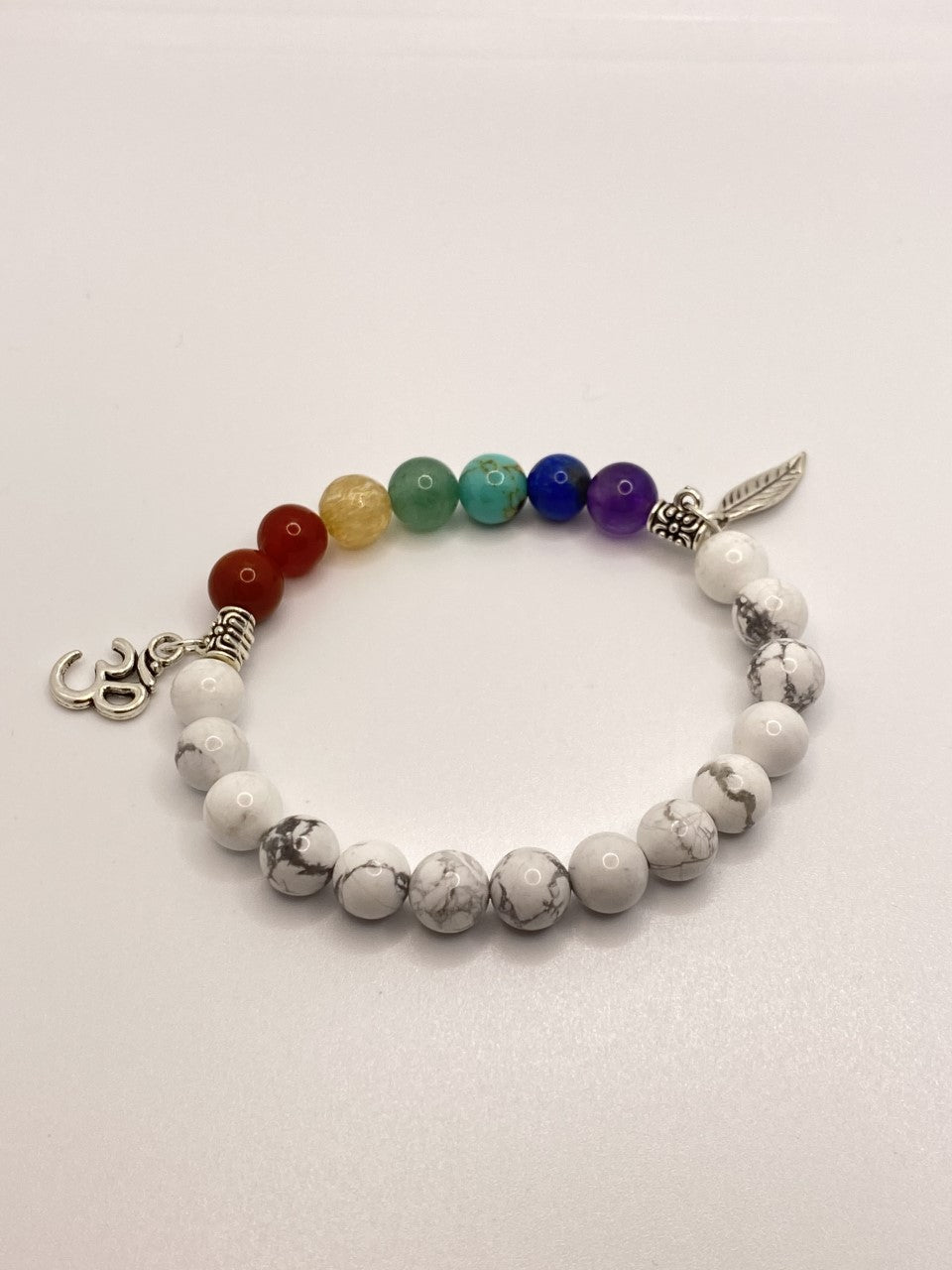 Howlite Om & Leaf Charm Chakra Bracelet 2